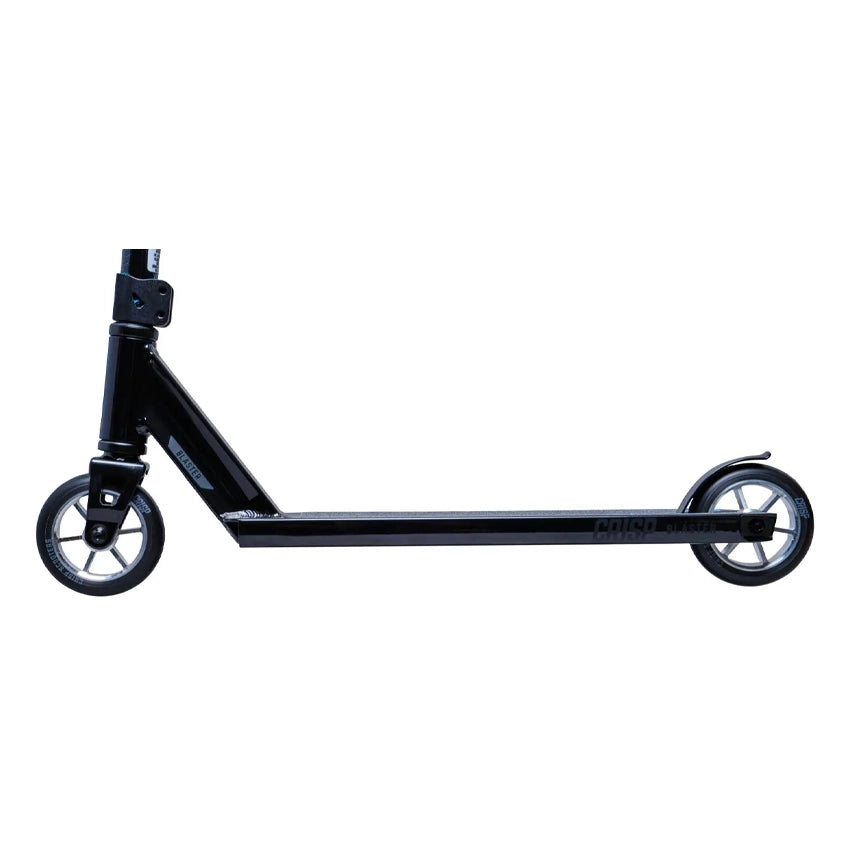 De 110 mm wielen met gespaakte aluminium kern zorgen voor snelheid en een soepele rit, terwijl de peg-cut dropouts het deck lichter maken en geschikt voor pegs. Met een semi-geïntegreerde headset en hoogwaardige ABEC-9 lagers is deze stuntstep technisch compleet.