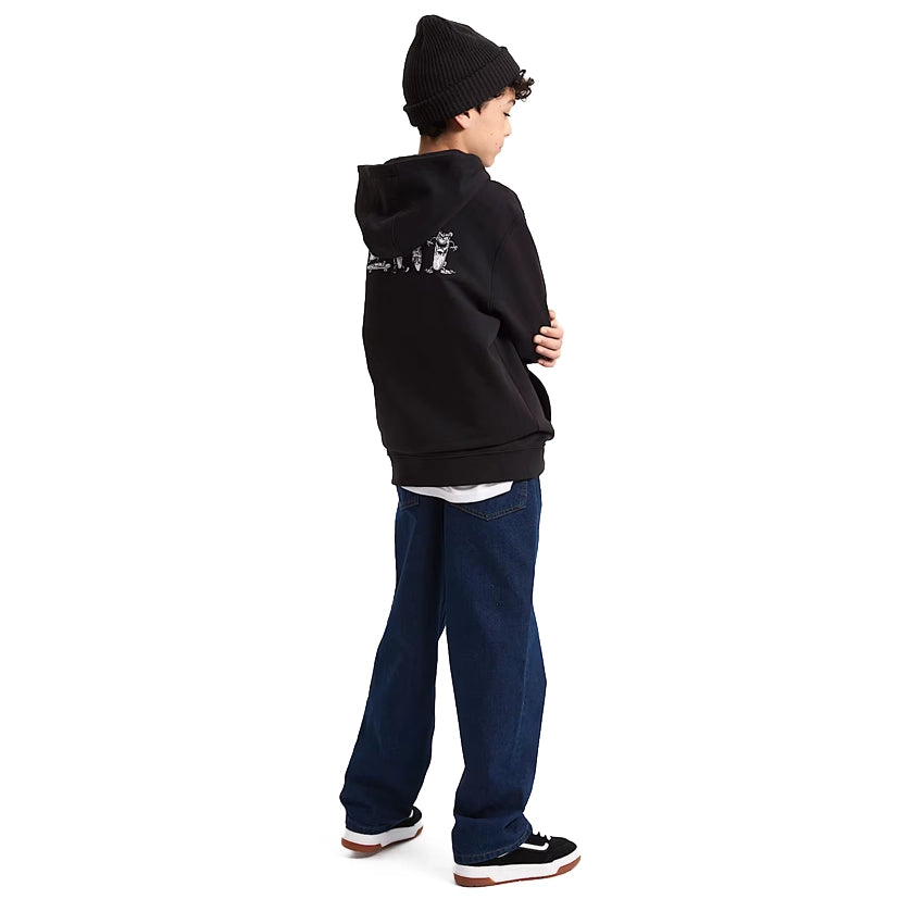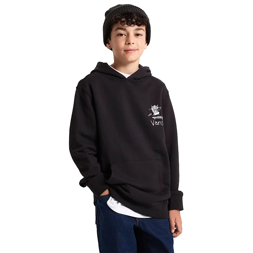 De By Board Gang Sweater heeft een capuchon, lange mouwen en een kangoeroezak aan de voorkant. Het Vans-logo staat op de linkerborst en op de voor- en achterkant staat een afbeelding van Board Gang.