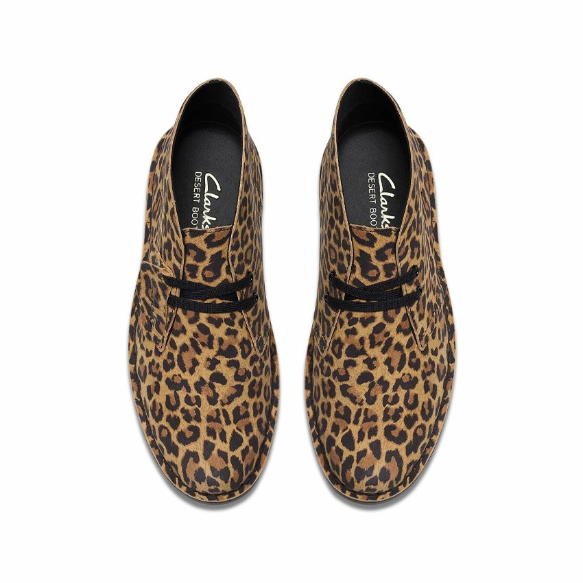 Cultureel cachet en design DNA: geen schoen is zoals de Clarks Originals Desert Boot. Nathan Clark's ontwerp uit 1950 was geïnspireerd door een ruige laars uit de Oude Bazaar van Caïro, en de minimalistische, progressieve stijl veroorzaakte een wereldwijde revolutie in schoeisel – gedragen door beatniks, mods, Britpop bands en Jamaicaanse rude boys, van Parijs tot Kingston, Tokio tot Londen. Elk ontwerpelement blijft vandaag de dag trouw aan dat eerste baanbrekende paar – hier worden de vervaardigde, strakke lijnen van de laars versterkt met opvallend luipaardprint, afgewerkt met een eenvoudige vetersluiting. De authentieke, duurzaam verkregen crêpezool voltooit deze onderscheidende silhouet. Onmiddellijk herkenbaar, voor altijd iconisch. Een echte original.