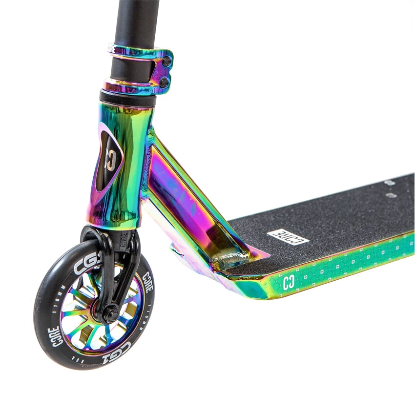 Ervaar de robuuste prestaties en het slanke ontwerp van de Core CG1 Mini Pro step, gemaakt voor mensen met een gemiddeld vaardigheidsniveau. Met een totale hoogte van 77 cm combineert deze step duurzaamheid en stijl naadloos. Het lichtgewicht frame weegt 3400 gram en de bar uit één stuk van chromoly staal heeft een stevige hoogte van 520 mm en een breedte van 470 mm. Het peg-cut ontwerp van het deck verbetert de wendbaarheid, terwijl de 110 mm wielen een soepele rit bieden. De Core CG1 is klaar om stedelijk terrein te veroveren en staat elke keer weer garant voor een plezierige rit.