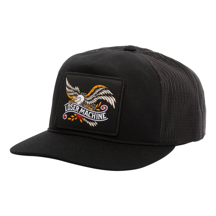 De Loser Machine Glory Patch pet is een truckerpet met traditionele pasvorm en een geborduurd logo op de voorkant.