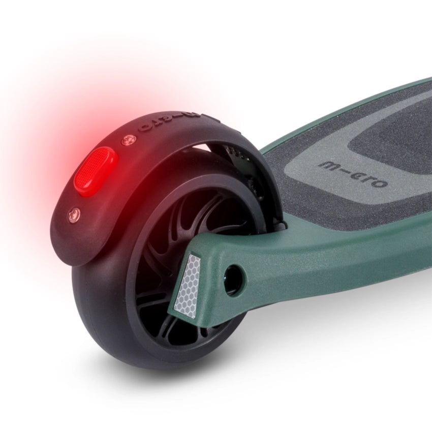Uniek aan deze step is het geïntegreerde achterlicht, dat werkt op een dynamo. Hierdoor ben je beter zichtbaar bij weinig licht, zonder gebruik van batterijen.
