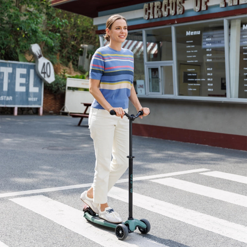 De Micro Kickboard Reloaded is de grotere broer van de Micro Maxi Pro en geschikt voor rijders vanaf 12 jaar. Dankzij het door Micro Mobility ontwikkelde lean-to-steer systeem stuur je door je lichaamsgewicht te verplaatsen, waardoor de step soepel en speels door de straten beweegt. Het flexibele dek, versterkt met glasvezel, zorgt voor extra comfort tijdens elke rit.