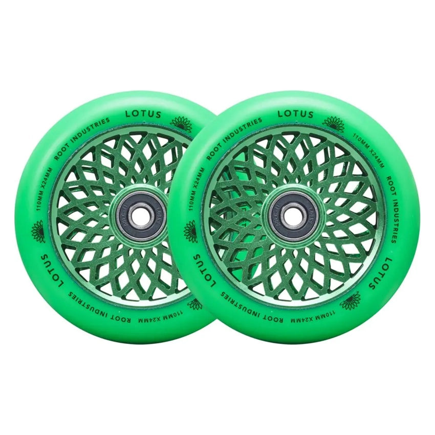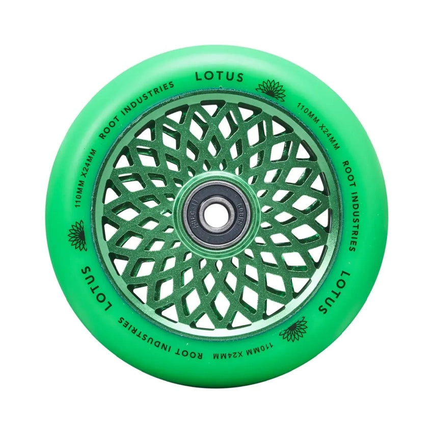 De Lotus stuntstep wielen van Root Industries zijn ontworpen met een geperforeerde aluminium kern, waardoor ze licht van gewicht zijn zonder in te leveren op sterkte. De 6061 aluminium kern zorgt voor duurzaamheid, terwijl het unieke ontwerp het gewicht terugbrengt tot slechts 240 gram per wiel.