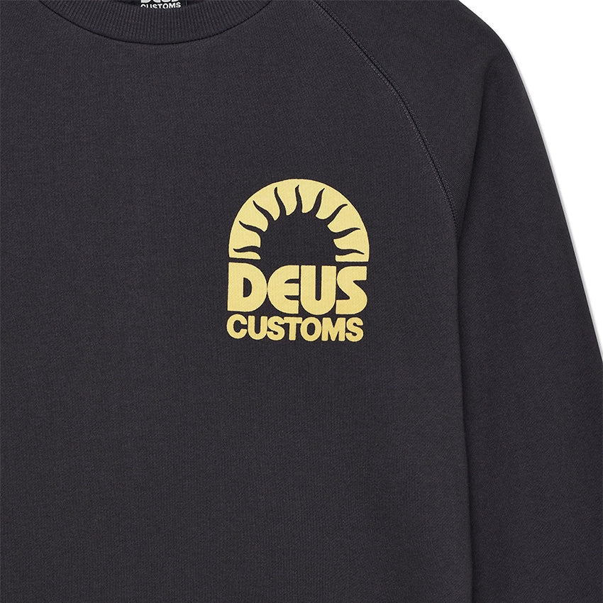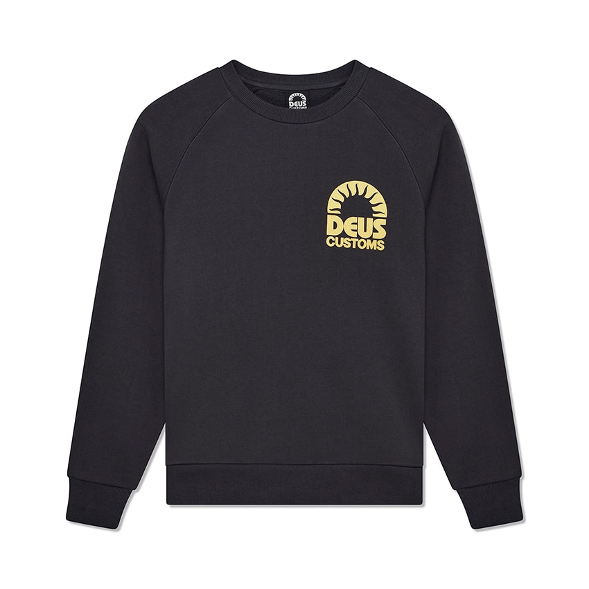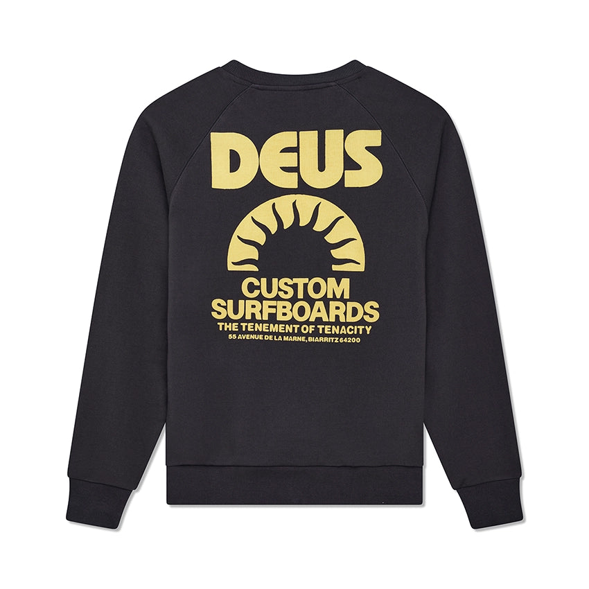 Box Fit Crew Fleece met opdruk op de borst en rug, gemaakt van gerecycled katoen met geborstelde achterkant en een zware enzym-stonewash
