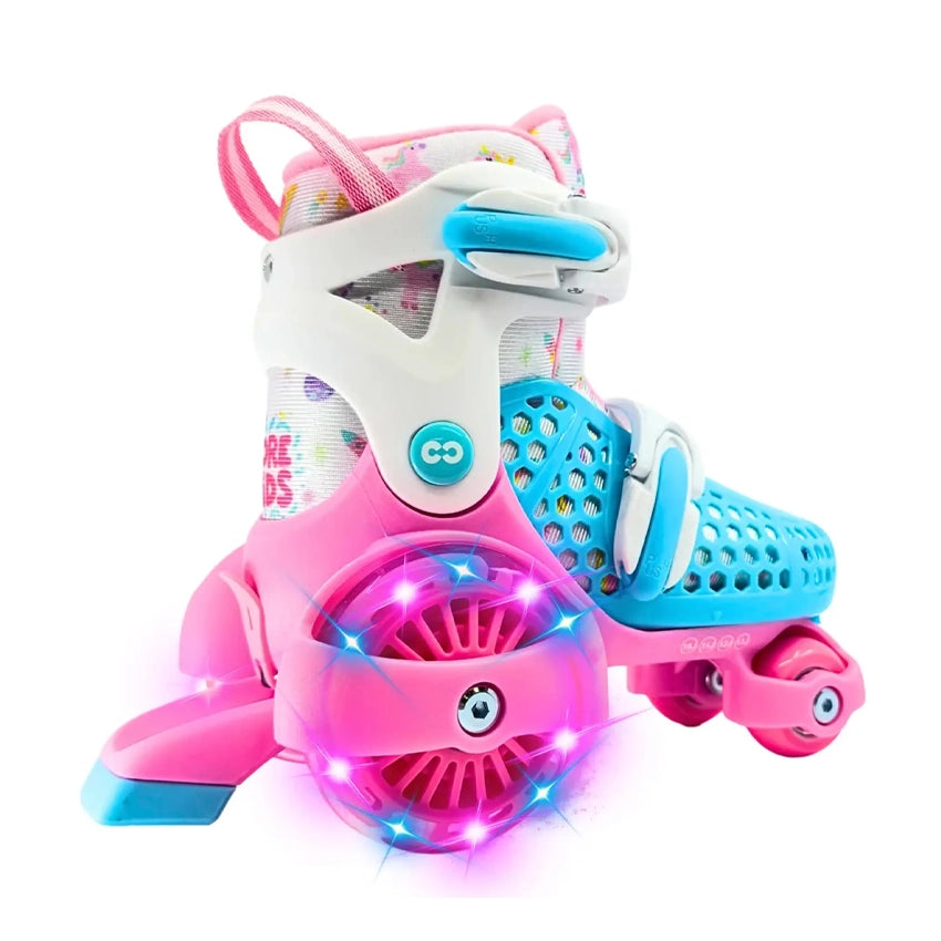 Met verstelbare maten en een comfortabel, stevig ontwerp zijn deze CORE Kids skates de perfecte keuze voor groeiende voeten. De micro-versteller met draaislot zorgt voor een goede en comfortabele pasvorm en de verlichte LED-wielen (geen batterijen nodig) zorgen voor extra plezier. De draaggreep maakt het gemakkelijk om deze skates overal mee naar toe te nemen, waar je kleintje ook naartoe gaat.