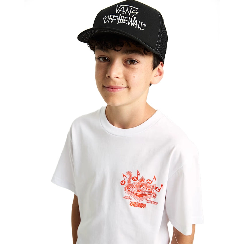 De Vans Pop Trucker Pet voor kinderen biedt ademend comfort en is voorzien van een gebogen klep en een gestructureerde voorkant. Een Vans-patch met gestikte rand verankert de look, terwijl de mesh achterkant en de verstelbare clipsluiting zorgen voor een luchtige, aansluitende pasvorm.