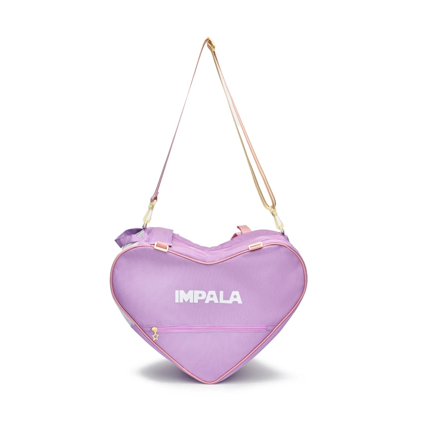 De Impala Rollerskate Bag is een opvallende hartvormige tas die speciaal is ontworpen om je rollerskates veilig en met flair mee te nemen. Gemaakt van 100% gerecycled polyester uit post-consumer afval, is deze tas niet alleen praktisch maar ook milieuvriendelijk.