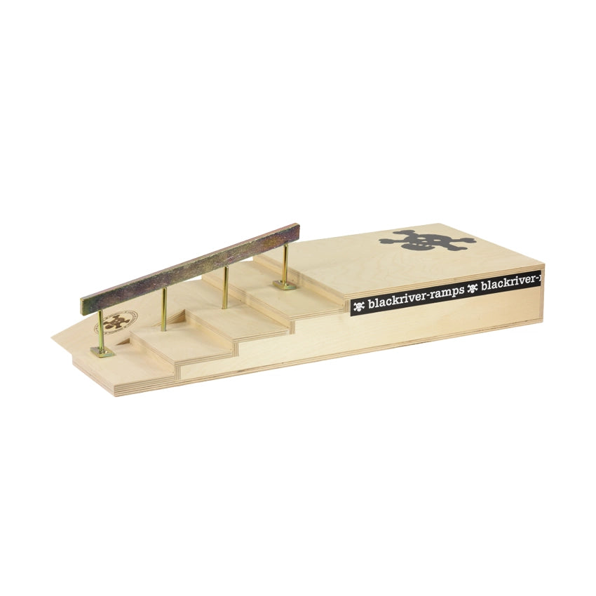 Als skateboarden je ware inspiratiebron is, dan zijn de Blackriver Fingerboard Ramps - Stairset misschien wel je ultieme droom. Een grote versie hiervan zou waarschijnlijk in elk tweede skatepark passen. Lage en brede treden, een degelijke handrail en een London gap, allemaal gecombineerd in één ramp. Een soepele houten roll-up en een rail naar keuze maken deze klassieker compleet voor elke collectie. Ben je klaar voor je volgende uitdaging?